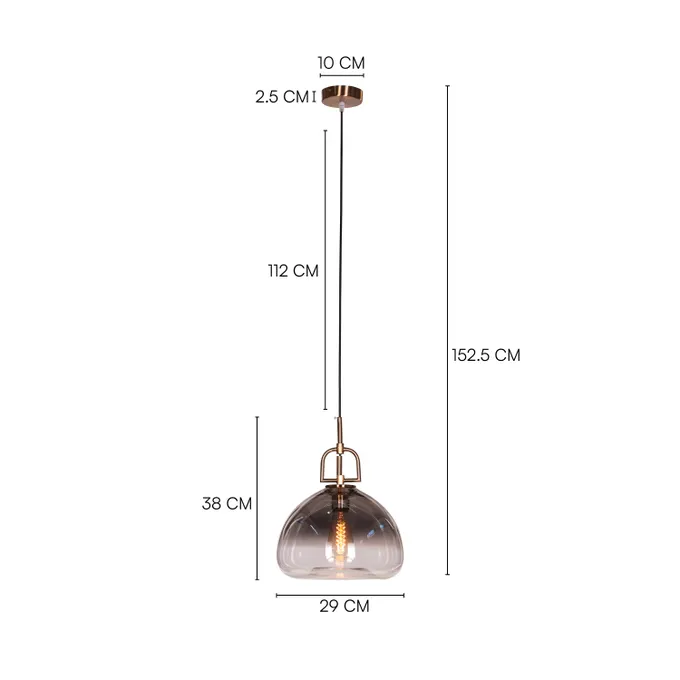 | Dimensions of Components | Glass Shade Dimensions- Height: 20 cm (8″) Diameter: 29 cm (11.5″)Wire Length: 112 cm (45″) (Adjustable) |